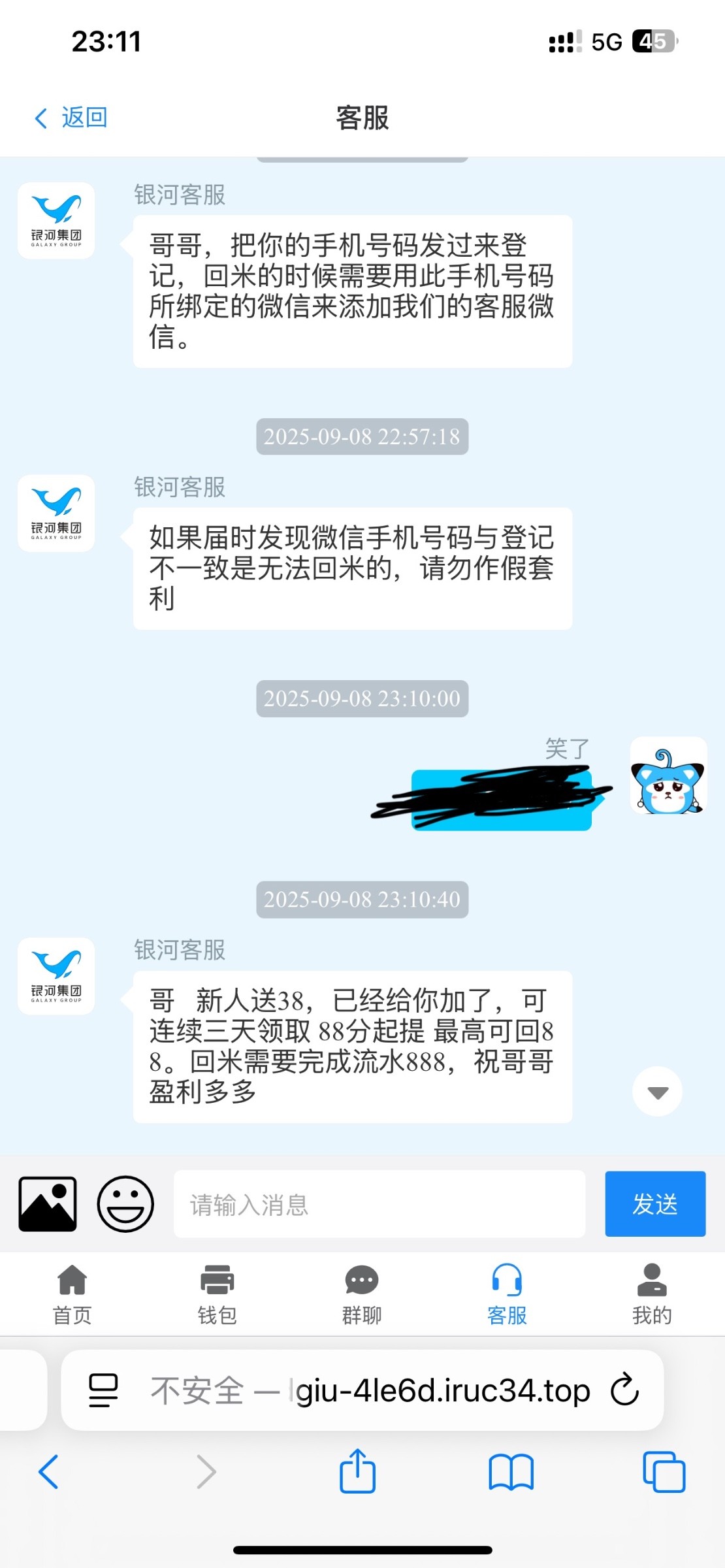 38打888流水可以下88现金 可以连续领取3天,之前玩过的旺旺登记的手机号数据清掉了 现在重新注册找客服申请