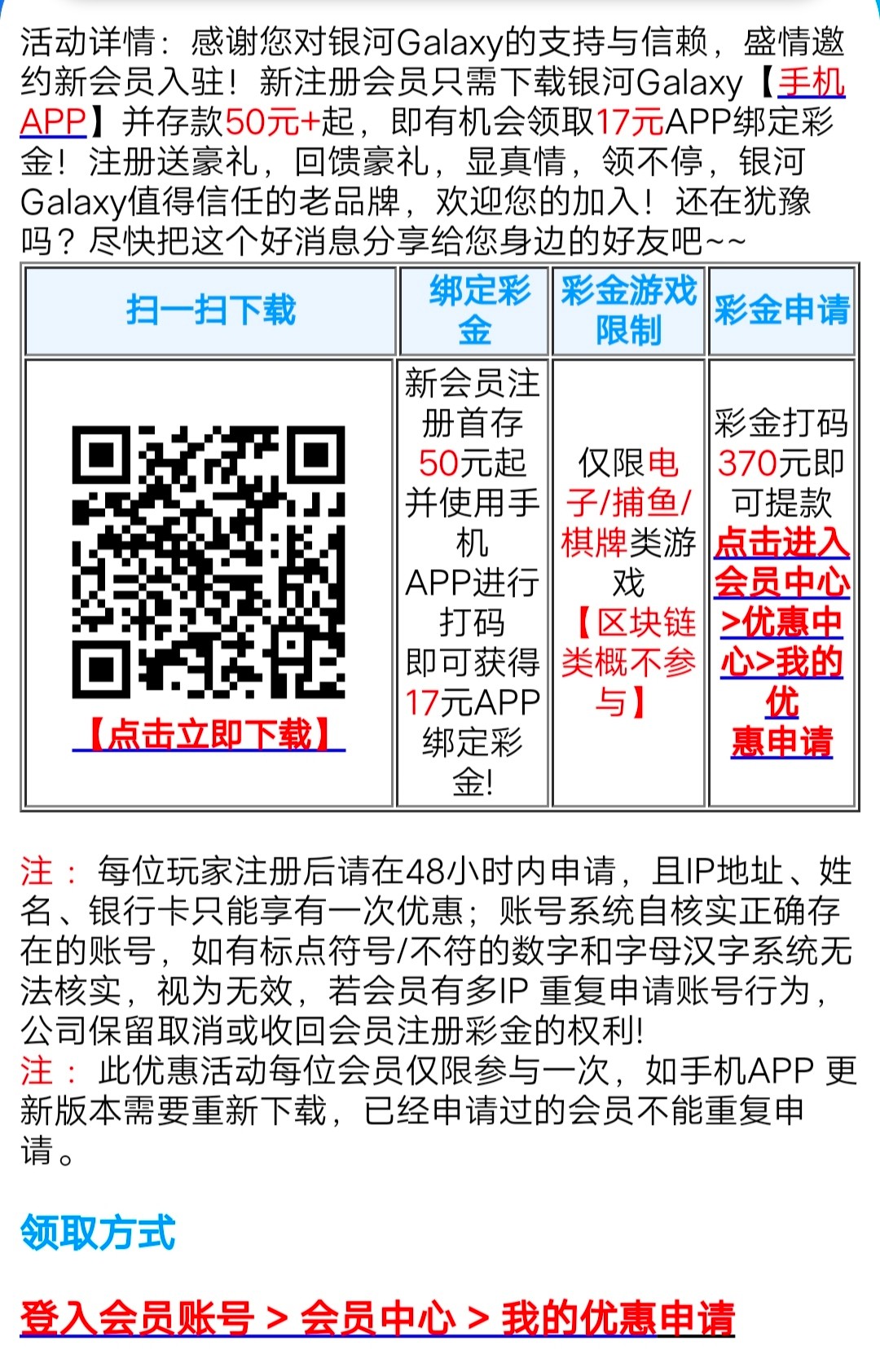 首存台想试试的可以看看,没有注册彩金,碰瓷的不用去了,首存是50+37,另外下载APP是17彩金,具体规则看介绍。