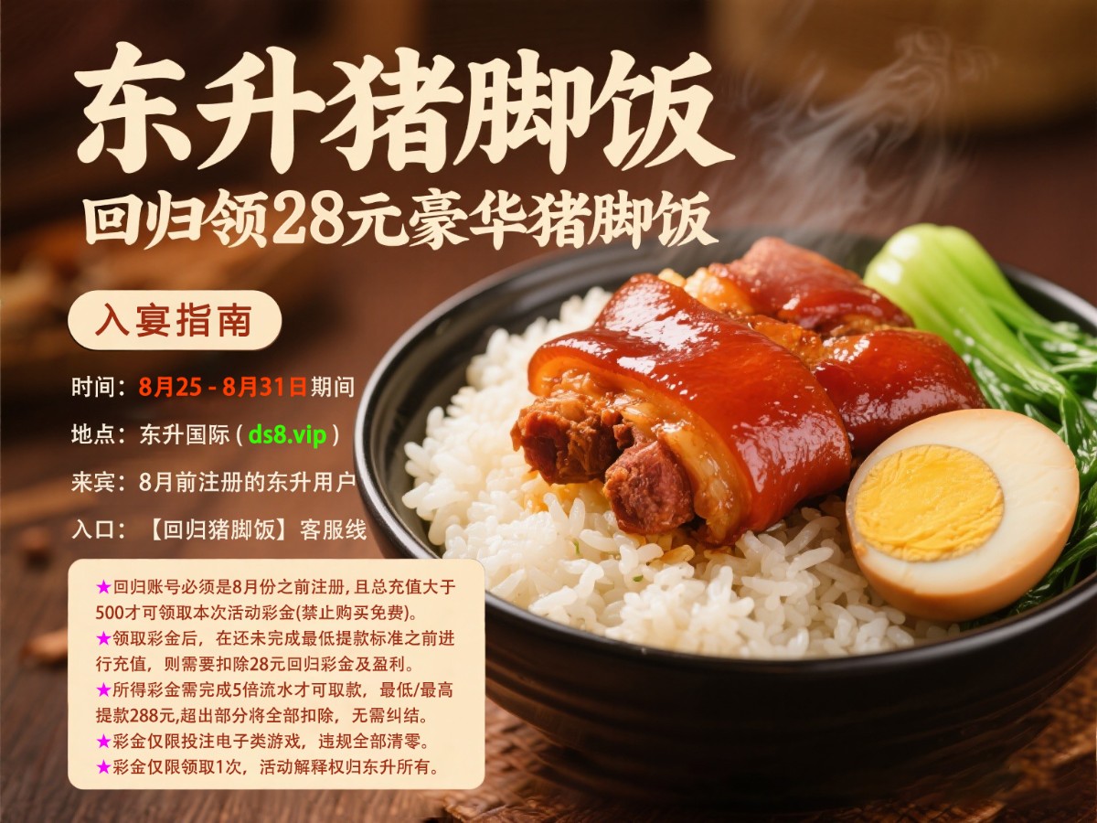 东盛国际七夕回馈,猪脚饭需要8月前注册且充值500+才能申请;七夕套钱的活动看介绍吧,纯分享出款自测。