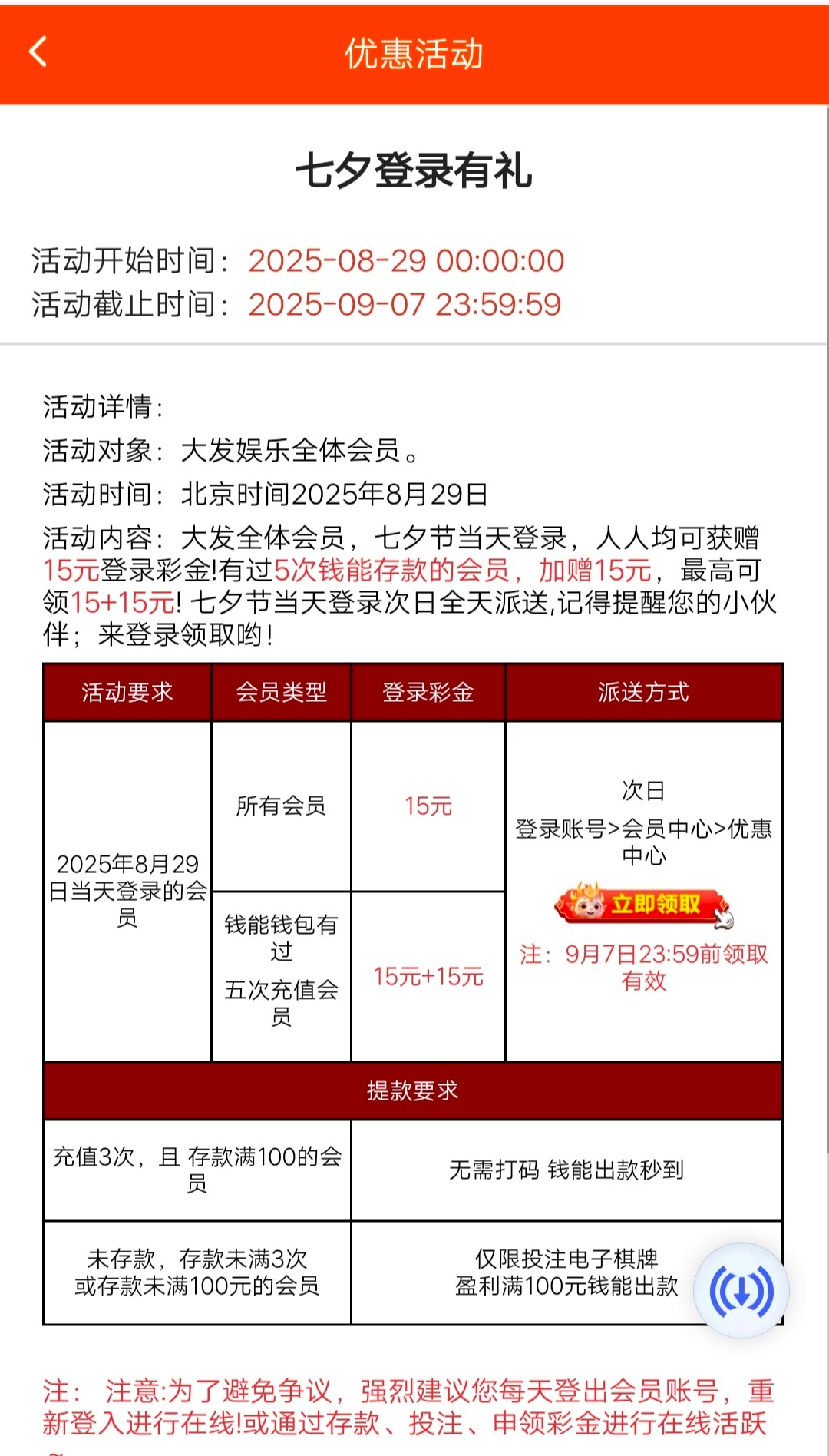【大发娱乐989】七夕登录送15
